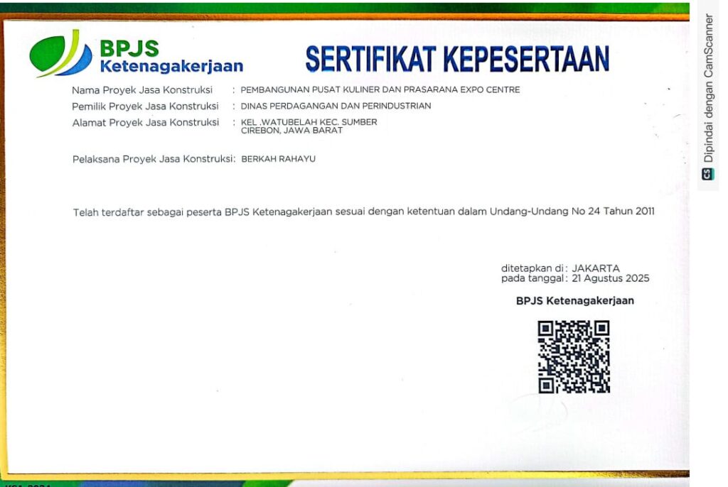 Sebagai wujud nyata kepedulian terhadap tenaga kerja, CV Berkah Rahayu memastikan seluruh pekerjanya terdaftar sebagai peserta BPJS Ketenagakerjaan. Langkah ini dilakukan demi memberikan perlindungan menyeluruh bagi para pekerja, baik saat menjalankan tugas maupun dalam menghadapi risiko pekerjaan.