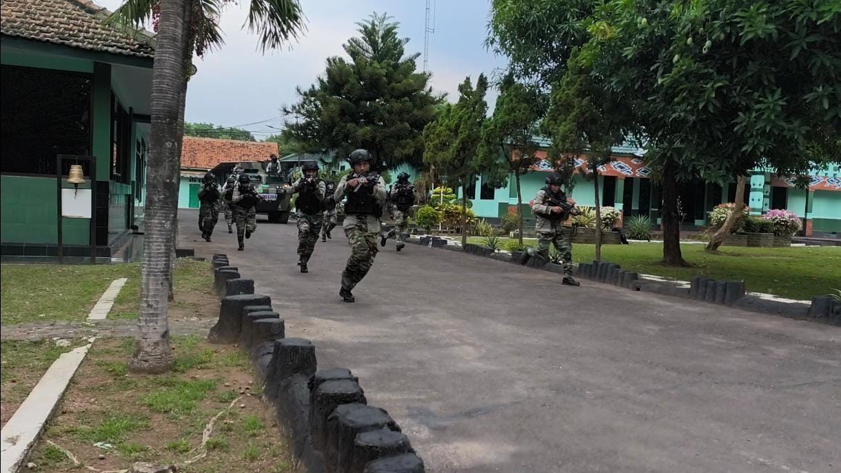 Cirebon, 16 Oktober 2025 – Komando Distrik Militer (Kodim) 0620/Kabupaten Cirebon menggelar latihan gabungan terpadu yang melibatkan personel TNI dari berbagai satuan, Kamis (16/10). Latihan ini mengusung skenario simulasi penyerangan terhadap Kodim 0620/Kab. Cirebon yang telah dikuasai oleh agresor, dan direbut kembali oleh pasukan gerilya.