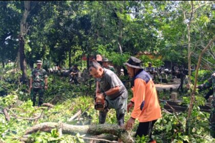 Cirebon – Kodim 0620/Kabupaten Cirebon melaksanakan kegiatan Karya Bakti bersama masyarakat dalam rangka evakuasi pohon besar yang tumbang akibat cuaca ekstrem, bertempat di Area Situs Makam Wali Song...