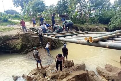 Jembatan Penghubung Desa Munjul–Sidamulya Ambruk, Koramil 0620-11/Astanajapura Sigap Bangun Jembatan Darurat